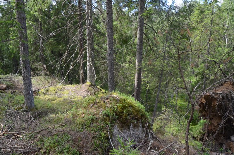 Den här skogen är fortfarande naturskog berättar han. Ägaren bor i stan,